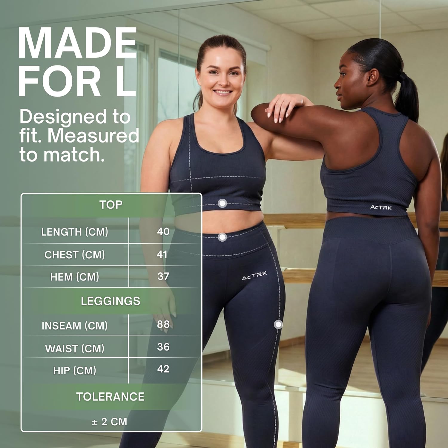 Women’s Workout Set Matching 2 Piece Size L – Squat Proof High Waist Seamless Ribbed Leggings and Racerback Sports Bra